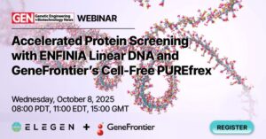 Join us Wednesday October 8th 2025 aT 8A PDT. In this GEN webinar, our expert speakers will present a case study demonstrating the exceptional properties and high-fidelity performance of ENFINIA Linear DNA as evaluated in GeneFrontier’s cell-free protein synthesis PUREfrex® system. These results showcase ENFINIA’s outperformance in terms of DNA purity, transcription efficiency, and robust protein expression for various constructs.